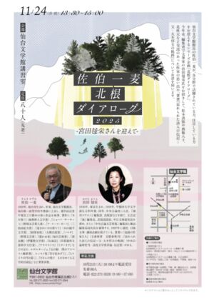 仙台文学館館長の佐伯一麦が、各分野で活躍されている方、注目している方をお迎えするシリーズ企画「北根ダイアローグ」。今年は、編集者で文筆家の宮田毬栄氏をお招きして、松本清張や西條八十、北杜夫など交流のあった作家の思い出や、著書『忘れられた詩人の伝記―父・大木惇夫の軌跡』についてお話を伺います。