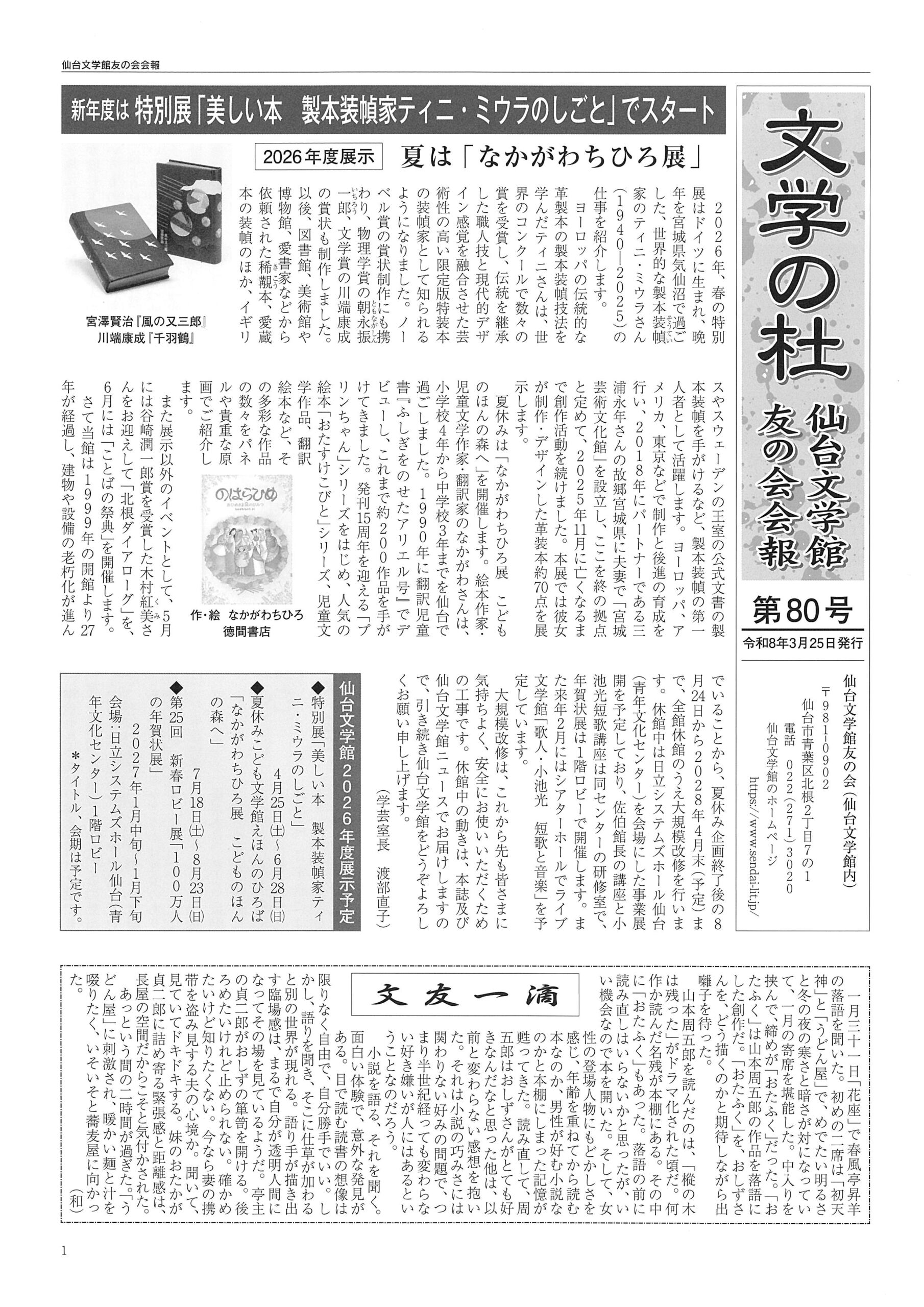 - 「仙台文学館ニュース」第五十号発行のお知らせ